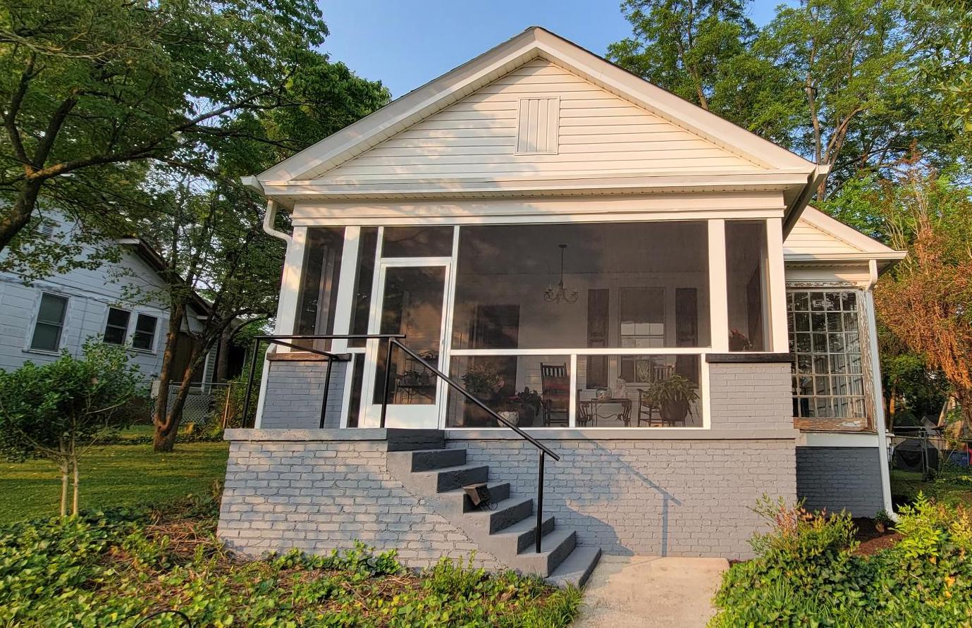 Greenville-After-Remodel-Aluminum-6×6-Post-Still-Water-Screen-Door-Chair-Rail. Published January 25, 2026 at 1379 × 891 in Greenville Porch Remodel